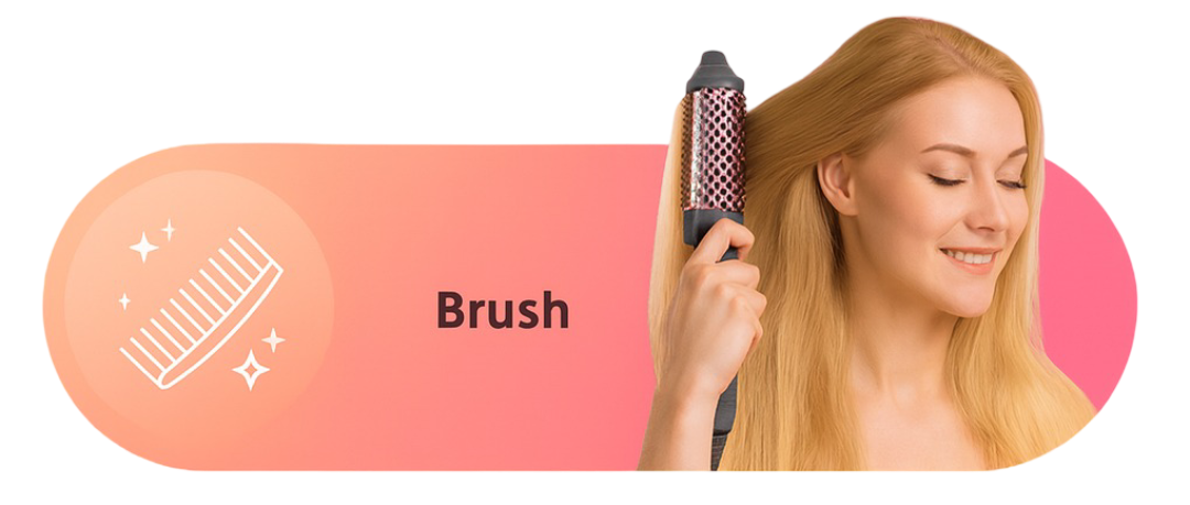 In its styling function, the tool works like a smart brush that guides the hair without pulling. The flexible bristles smooth from roots to ends, detangling, shaping, and arranging with total ease. It’s ideal for adding volume at the roots, shaping your bangs, or simply leaving the hair aligned and natural. After just a few strokes, the hair looks fresh, lightweight, and perfectly put together.